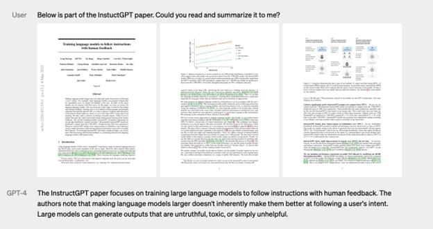 在 OpenAI 官方介绍显示,GPT-4 可以对插入了多个图表的论文进行解读,并用精炼的语言总结论文的内容。