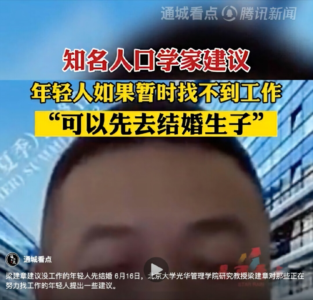 新周刊 :专家建议,年轻人如果找不到工作,可以先结婚再生孩子。这建议合适吗?