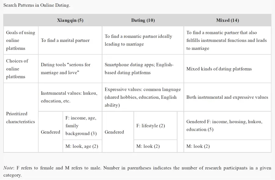 以往研究通常认为,使用网络平台来找寻伴侣象征着现代性和选择自由,但我们的研究挑战了这种观点,无论提供交友服务网络平台,还是参加者的择偶模式,都是复杂多样的。很难传统或者现代这样简单的定义区分多样的择偶模式。在人们使用网络平台来找寻伴侣时,现代和传统行为之间的界限复杂而模糊。