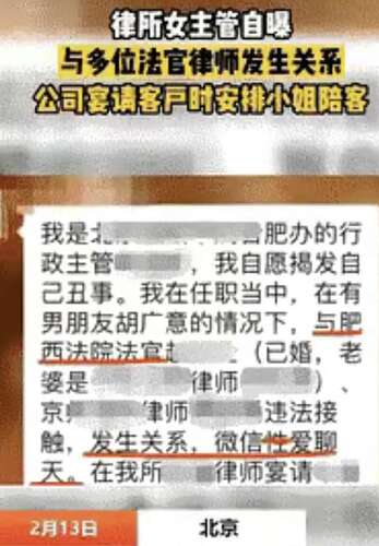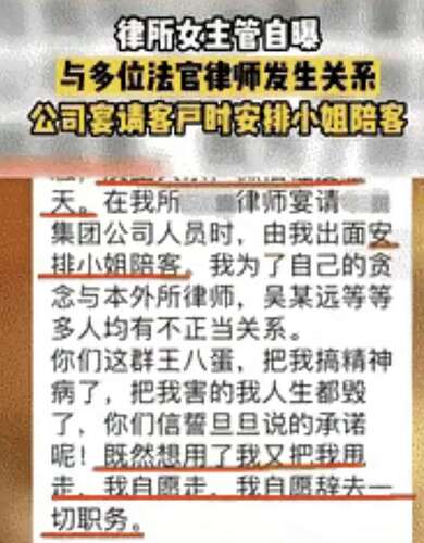 律所女主管自曝与多位法官乱搞 最新通报来了