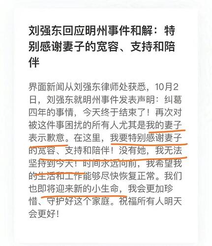 此时此刻,刘强东如释重负,回到家,再次向妻子 " 奶茶妹妹 " 章泽天表示歉意,而且透露了他们的第二个孩子准备出生的消息。