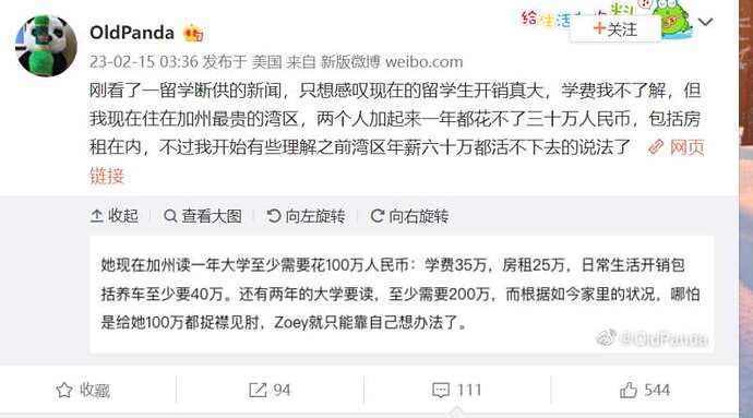 这小姑娘,大概率是浙江小老板家庭背景,比马云马化腾这类超级富豪要低一个档次,但是比普通人肯定要富不少,她在加州,房租25万,日常生活开销40万。