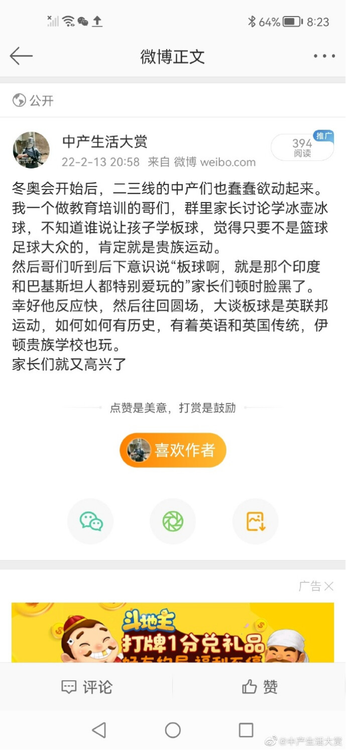 去年北京冬奥会那会,有的中产家长,疯狂去追捧滑雪等高端贵族运动,企图把子女鸡娃鸡成下一个谷爱凌。有的家长,连板球——一个很偏门的英式球类运动项目——也去问了。