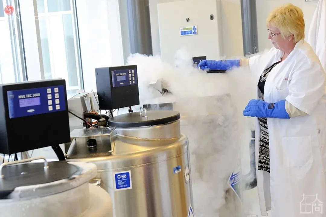 ■ 2011年4月,荷兰阿姆斯特丹,技术人员打开装着女性冷冻卵子的容器。