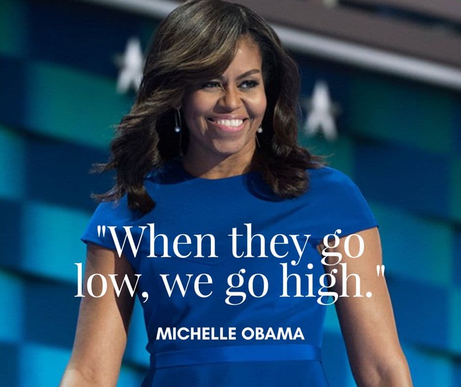 这两拨人风格完全不同的发言,让我想起了美国前总统奥巴马的夫人米歇尔奥巴马的一句名言:“When they go low, we go high!” (当他们开始堕落的时候,我们继续上升)。