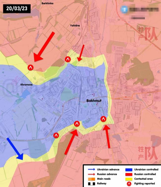 红色区域是俄军控制区,两个攻坚战都是围住了东、南、北三个方向,乌军则依托西面开阔地带,保持人员和物资的运输通畅,坚守城池,与俄军一步一步打巷战。从图上可以看到,俄军在北面切断了阿夫迪夫卡的铁路,这是俄军最近在阿夫迪夫卡取得的最大进展。可要说俄军彻底拿下阿夫迪夫卡,依然很遥远。