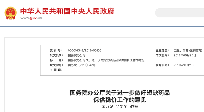 吴彤所提到的盐酸多巴胺注射液的价格变动,或许与2019年10月国务院办公厅公布的《关于进一步做好短缺药品保供稳价工作的意见》有关。