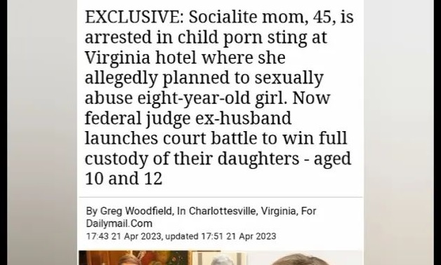 近日,一名来自弗吉尼亚州的一名联邦法官前妻刚刚被控传播儿童色情制品并试图性虐待一名8岁小女孩,而被捕。
