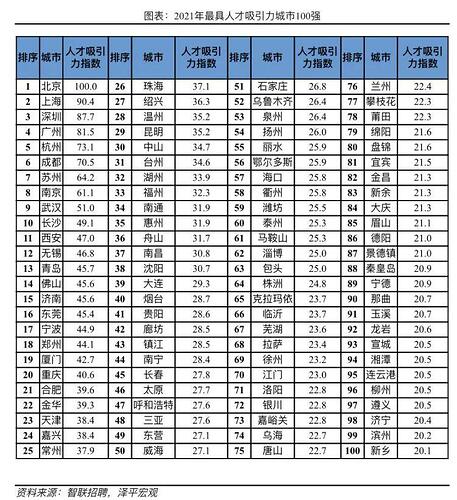 此前泽平观察曾发布过 2021 年最具人才吸引力城市 100 强,北上广深依然是首选,不过紧随其后的多座新一线城市也开始变成众多青年的主流选择。我们始终认为,在人口红利结束后,如何吸引人才并充分利用回流人才价值,机遇摆在每个城市管理者的面前。